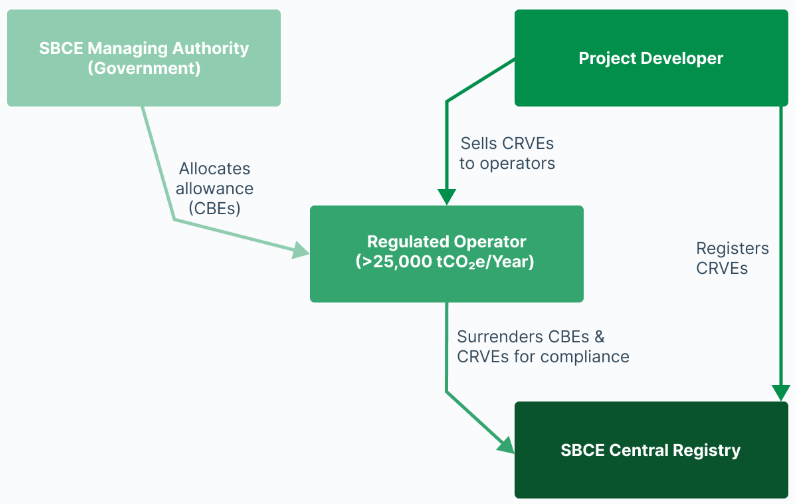 - CRVEs (offsets) under the SBCE will have a quantitative limit (maximum %) set by the Management Body and formalized in the NAP. Similar to the CBEs, they can also be traded or cancelled.