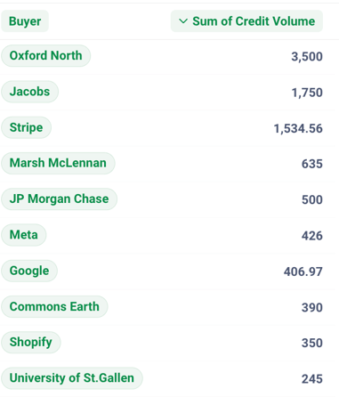 - Offtake: 196,450 credits across 4 deals (MoM -56%).
